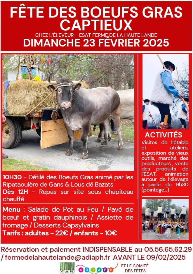 En raison de la situation sanitaire actuelle et de l’incertitude du contexte à venir, la fête des bœufs gras de Captieux 2026 est annulée.